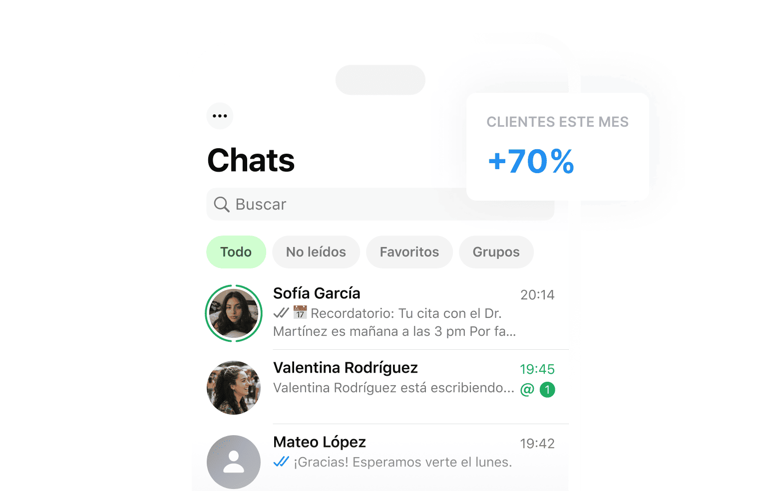 Empezamos a enviar campañas de WhatsApp a pacientes anteriores. ¡Volvieron! Nuestra tasa de reservas repetidas aumentó un 70 %, y los ingresos de pacientes que regresan se duplicaron.
