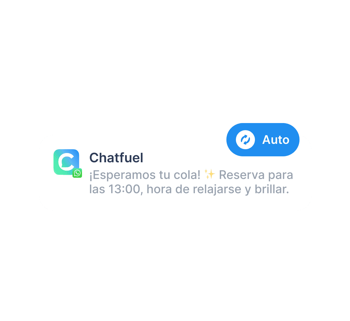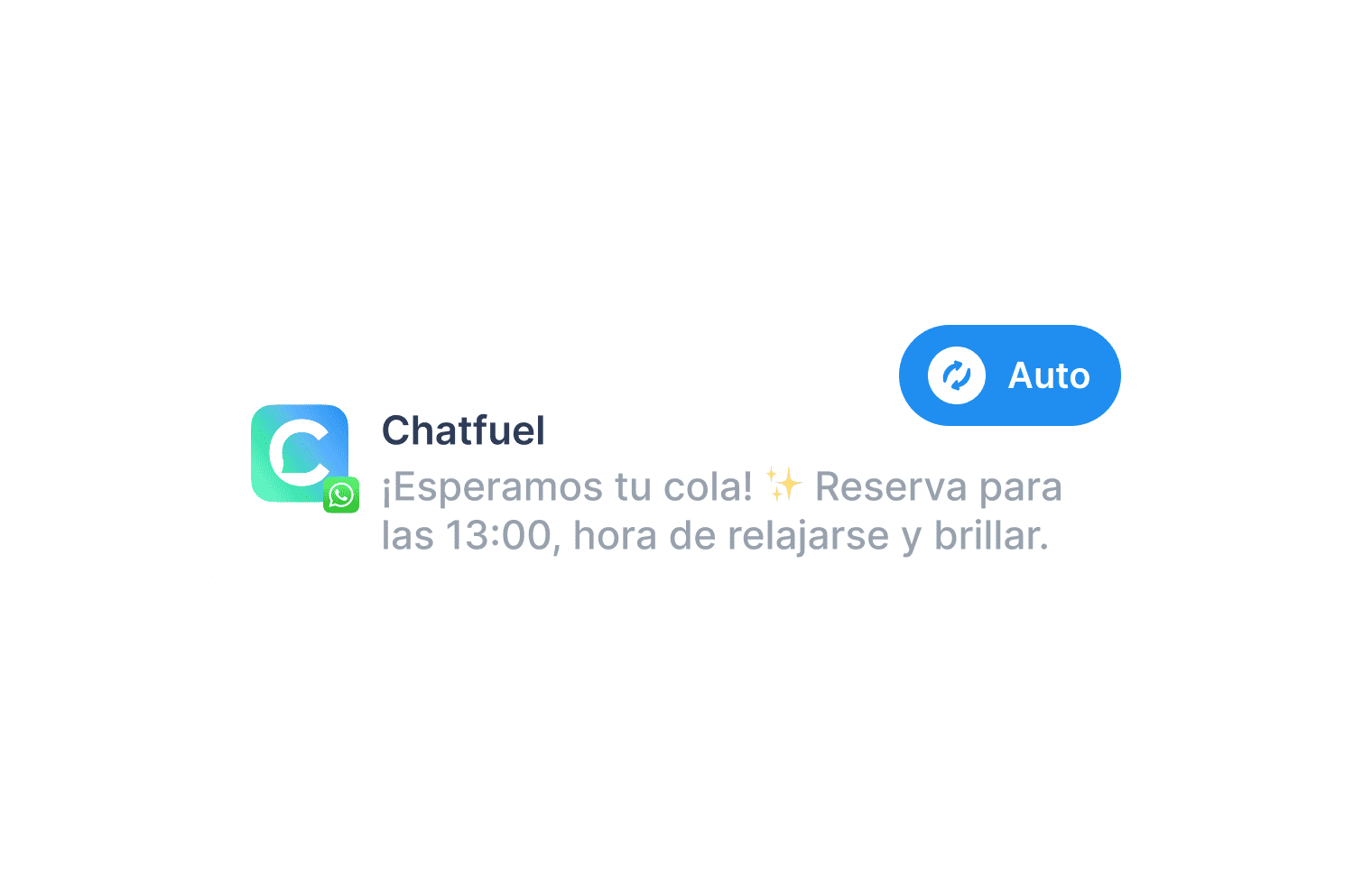 Chatfuel envía recordatorios automáticos antes de cada cita. Los clientes llegan a tiempo, hay menos cancelaciones y ya no perdemos horas confirmando por WhatsApp.