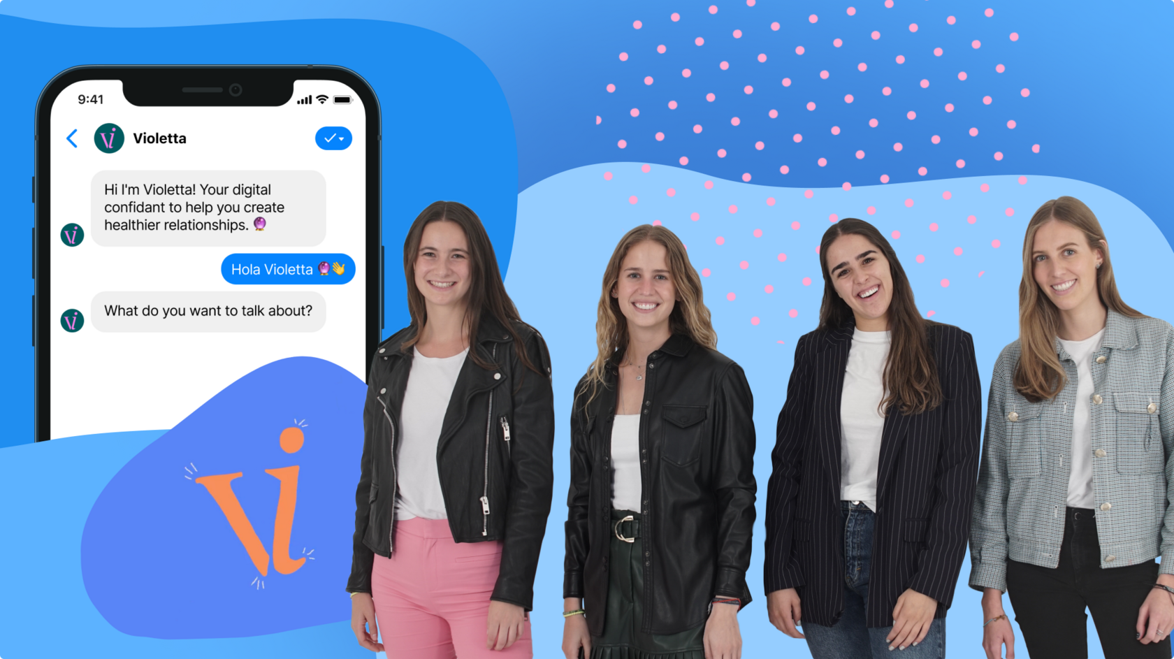 Violetta é o chatbot de saúde mental em uma missão para ajudar as pessoas a criar relacionamentos melhores e evitar a violência. Ela é como uma amiga que proporciona uma experiência empática e agradável ao discutir assuntos delicados.